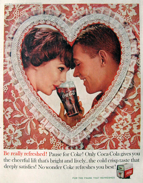 Valentine’s Day ads are so dreamy. I love the shades of pink and red, the calligraphy writing, and the dainty little hearts. While some Valentine’s Day ads can be a liiiiiittttleee….questionable….others are lighthearted and keep the lovingly innocence of the holiday. I, for one, love the vintage ads. Let’s go over a few, shall we?