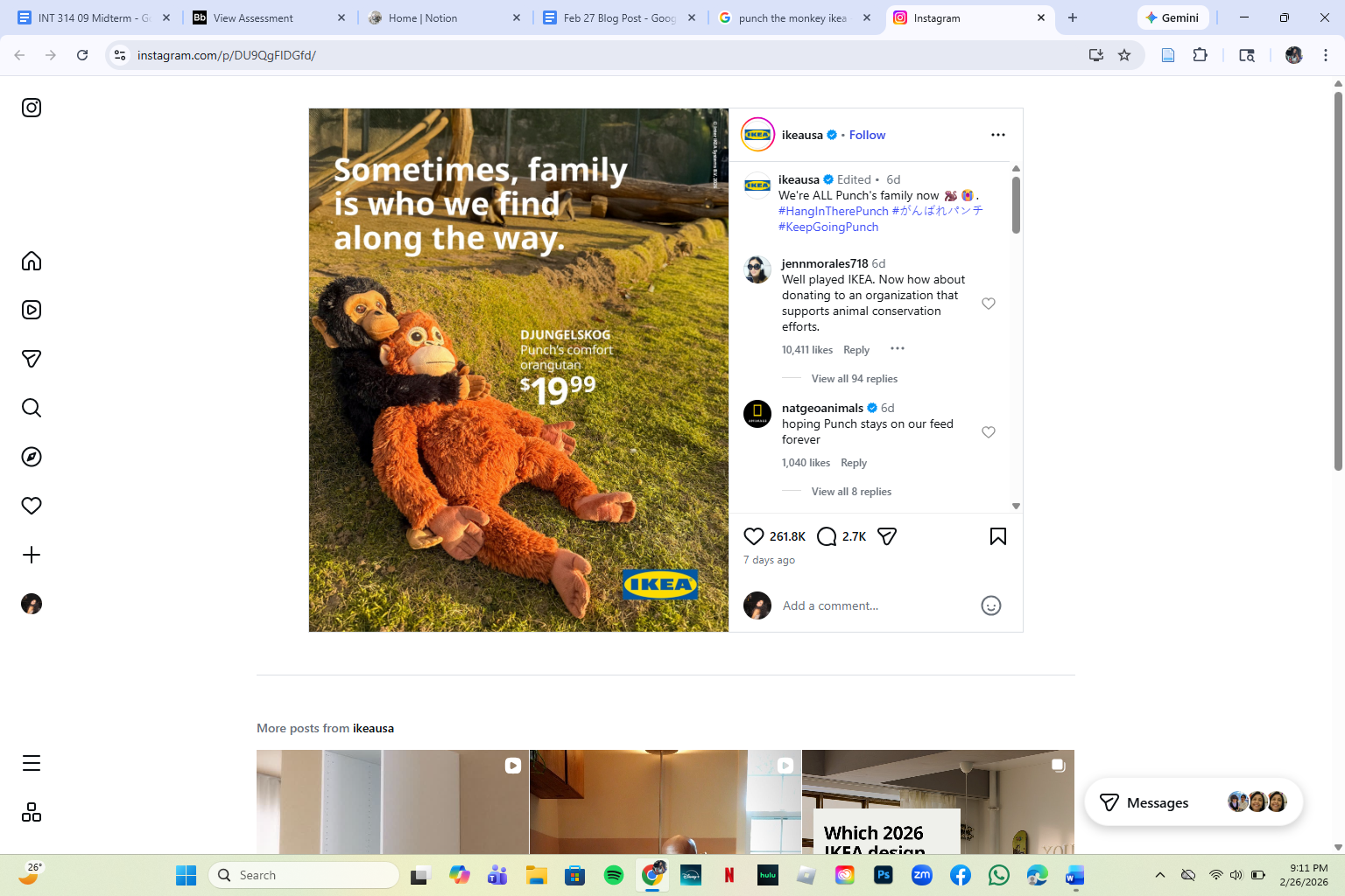 It doesn’t just stop there. Multiple social media posts on all of IKEA’s platforms have since followed with hashtags such as “Hang in There Punch” or “Keep Going Punch,” and an overarching tone and messaging of “We’re all family.” IKEA markets globally have also joined in the conversion, with IKEA Japan donating more stuffed toys to the zoo and IKEA Spain sharing an image of Punch with the plush toy.