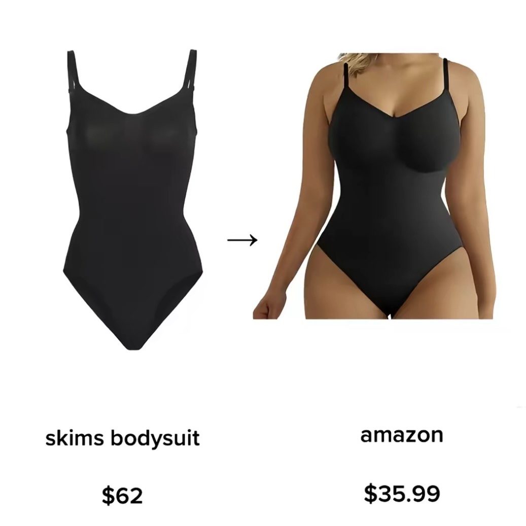 Amazon has a ton of bodysuits that look almost exactly like Skims. They are way cheaper but still give a similar fit and style. This makes people question whether Skims is really worth the higher price or if they are mostly paying for the brand name. It can make Skims feel less exclusive, especially for college students.