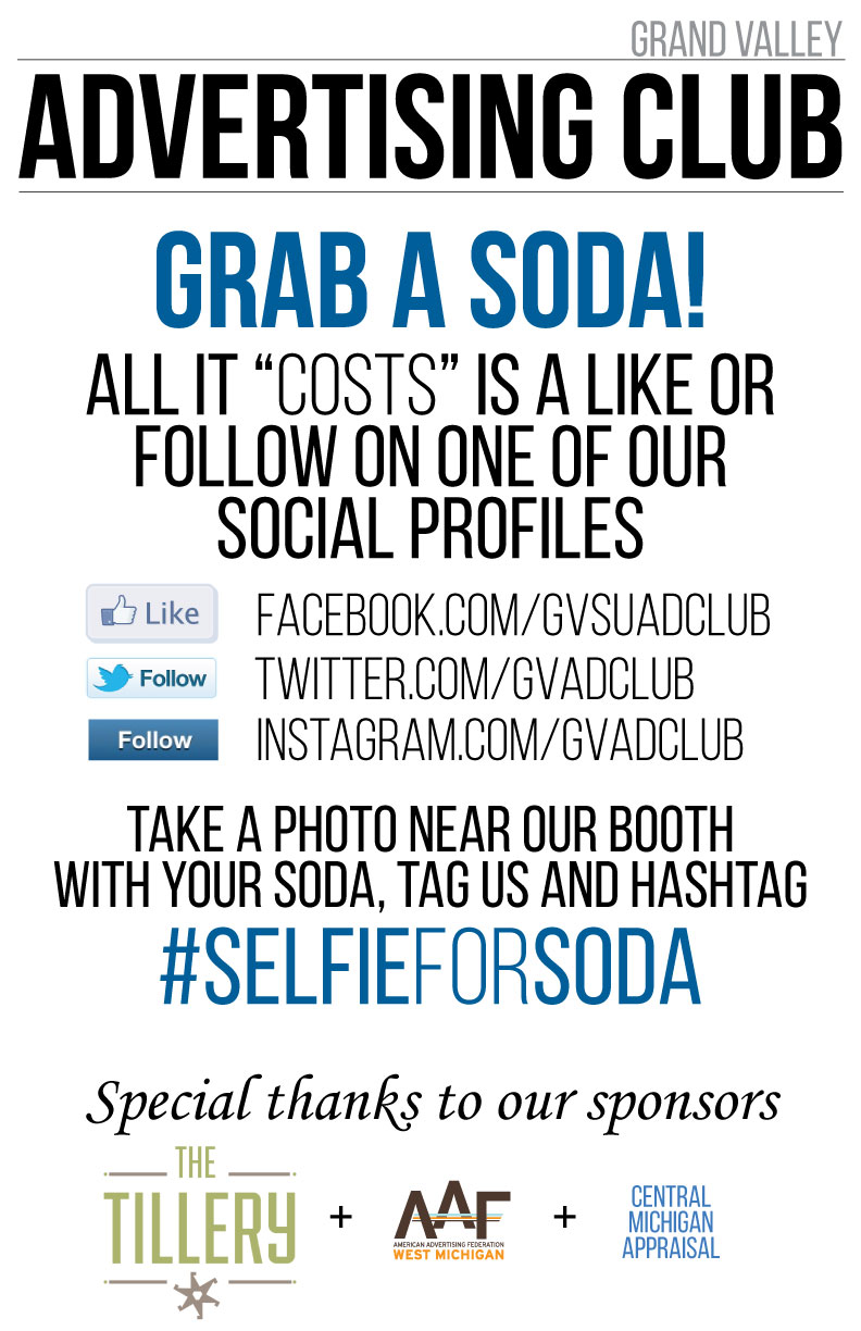 Hand outs that you can expect at our booth while supplies last will be ice cold sodas and gifts generously donated from The Tillery, AdFed West Michigan, and Central Michigan Appraisal. You can always like our social media accounts ahead of time. Just pull it up on your phone when you come to see us!